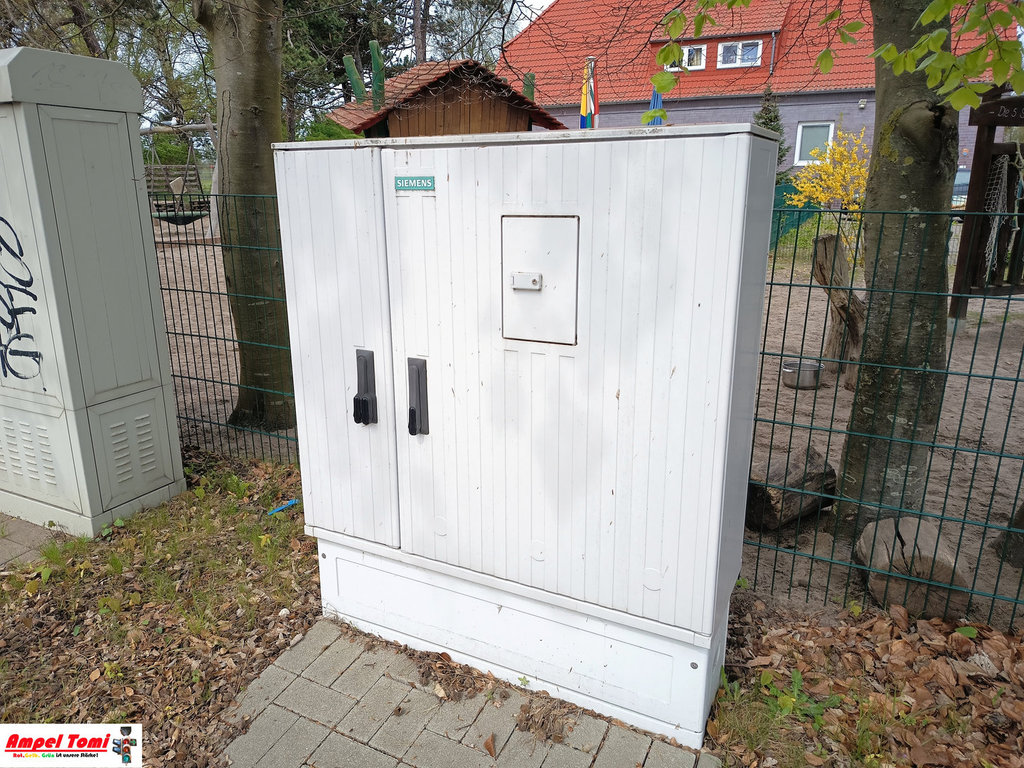 In der Ortsmitte von Warnemünde gibt es eine alte Siemens LSA, die am Hauptzubringer, parallel zum Strand, Richtung Elmenhorst-Lichtenhagen liegt. Es handelt sich dabei um eine MS-Plus Anlage mit 10V Technik, welche den Knoten mit abknickender Vorfahrt regelt.