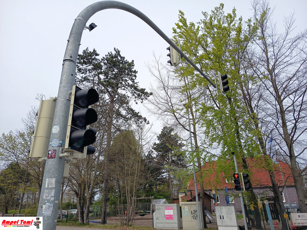 Im Jahr 2025 besuchte ich die Anlage an diesem Standort erneut. In der Zwischenzeit ist diese komplett erneuert - neue Maste, neues Steuergerät an einem neuen Standort, neue Signalgeber, neue Taster.