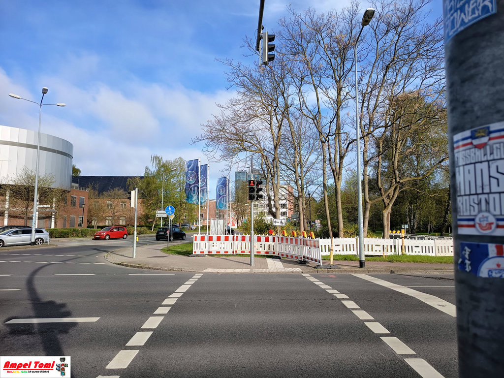 Direkt am Ortseingang von Warnemünde wird man von einer K-LSA begrüßt, welche im Jahre 2011 eigens für die damals neuerichtete Bahnüberführung gebaut wurde, welche den Bahnübergang "Alte Bahnhofsstr./ Am Passagierkai" ersetzen sollte. Die LSA wurde damals noch mit Global Signalen ausgerüstet. Bei der Anforderungstechnik und Blindensignalisierung kam hier leider noch RTB zum Einsatz.