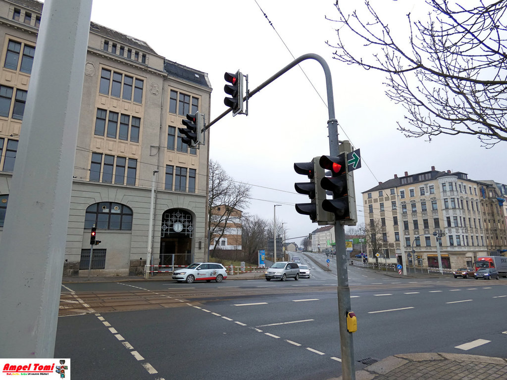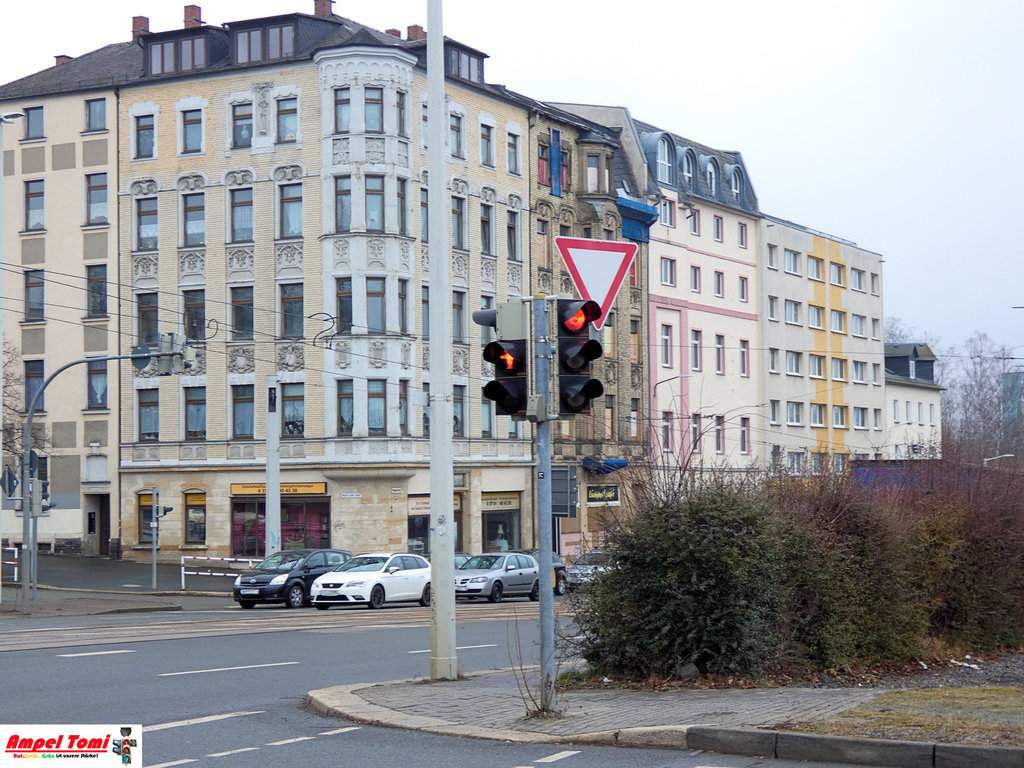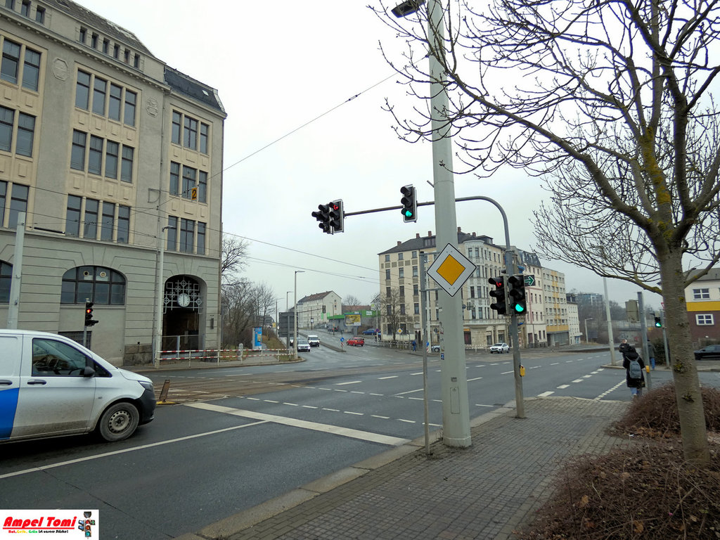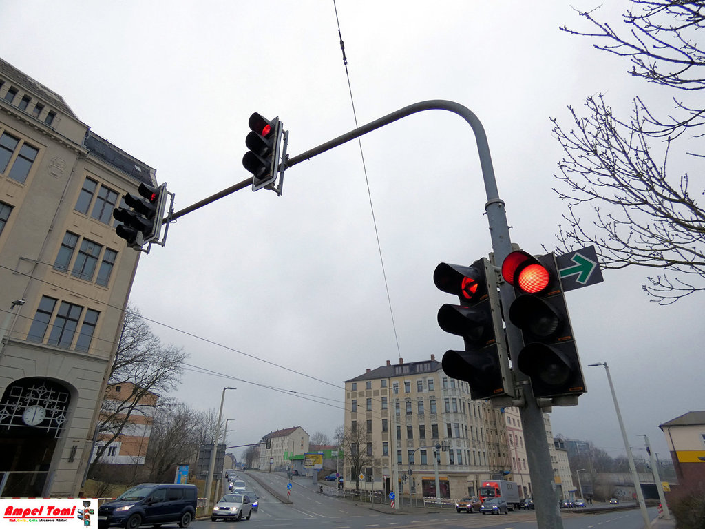 Entlang der B92 in Plauen, am Knotenpunkt mit der Martin-Luther-Str. befindet sich eine Lichtsignalanlage von Stührenberg. Die Uranlage scheint der Maste nach eine Signalbau Huber gewesen zu sein.