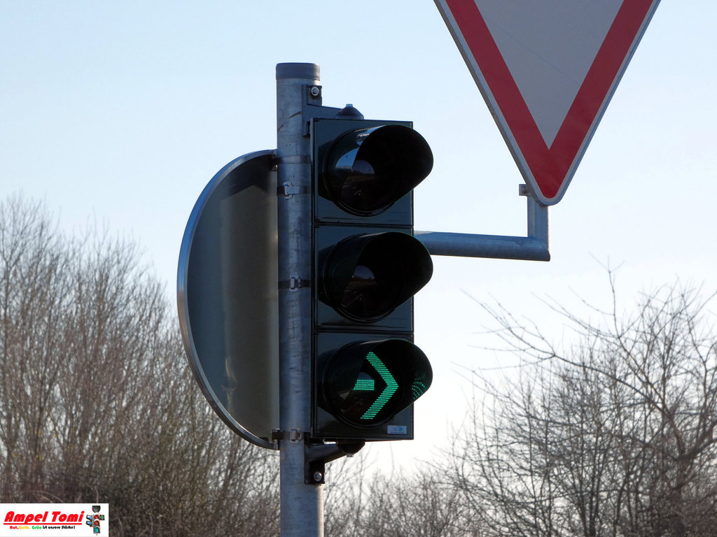 In Radebeul gibt es noch eins: ein Geschwindigkeitssignalgeber. Diese sollen auf koordinierten Strecken die optimale Geschwindigkeit anzeigen, damit man die berühmte und beliebte Grüne Welle erwischt. Dieses Signal ist schon seit Jahren außer Betrieb und wird mittlerweile durch ein Verkehrsschild verdeckt.