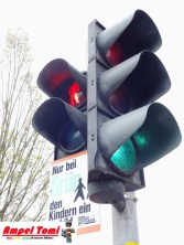 Im Sommer 2014 wurden dann die zwei Pilotanalagen eingerichtet. Seit dem ertönt bei jeder Anforderung der Satz "Dankeschön, Gleich wird´s grün". Es gab viel Begeisterung und Interesse. Auch die Presse berichtete lüber die "sprechende Ampel". Mittlerweile war diese Art auch in anderen Städten gefragt.